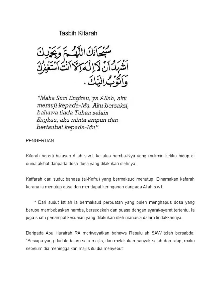 Berikut adalah pengertian antara kifarah dan kaffarah. Dah lama rasanya tak sertai majlis ilmu seperti usrah atau seumpamanya. Tasbih kaffarah + surah al asr (with translations) | ustaz dr. Md fatris bakaram (mufti singapura). Syukur kepada allah yang menjadikan hambanya tidak lain tidak bukan untuk beribadah kepadanya. Adakah kita ini penuntut ilmu yang sebenar?adakah kita berada dalam majlis ilmu dalam keadaan yang penuh adab atau sebaliknya?